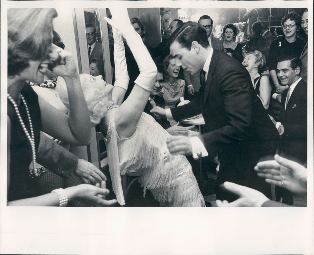 Hope Hampton, queen of cafe society and former musical comedy star sets the pace for the enthusiastic twist party with her partner