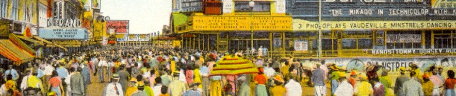 Boardwalks and entertainment piers – the start of this entire scene in Atlantic City – are pretty much a thing of the past now. I doubt that it would even be possible to build such structures on most coastlines today, with environmental laws as well as the increased awareness that an occasional storm will surely destroy everything.