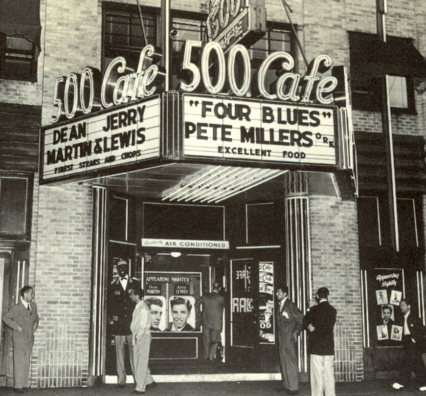 The 500 Club in 1946 when Martin & Lewis teamed up for the first time. Dean Martin is on the right.