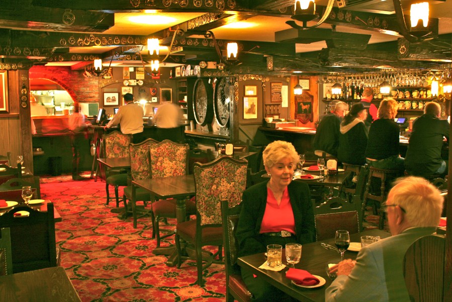 Original proprietors Mr. and Mrs. Fletcher in the foreground enjoy the Friday night salmon special.