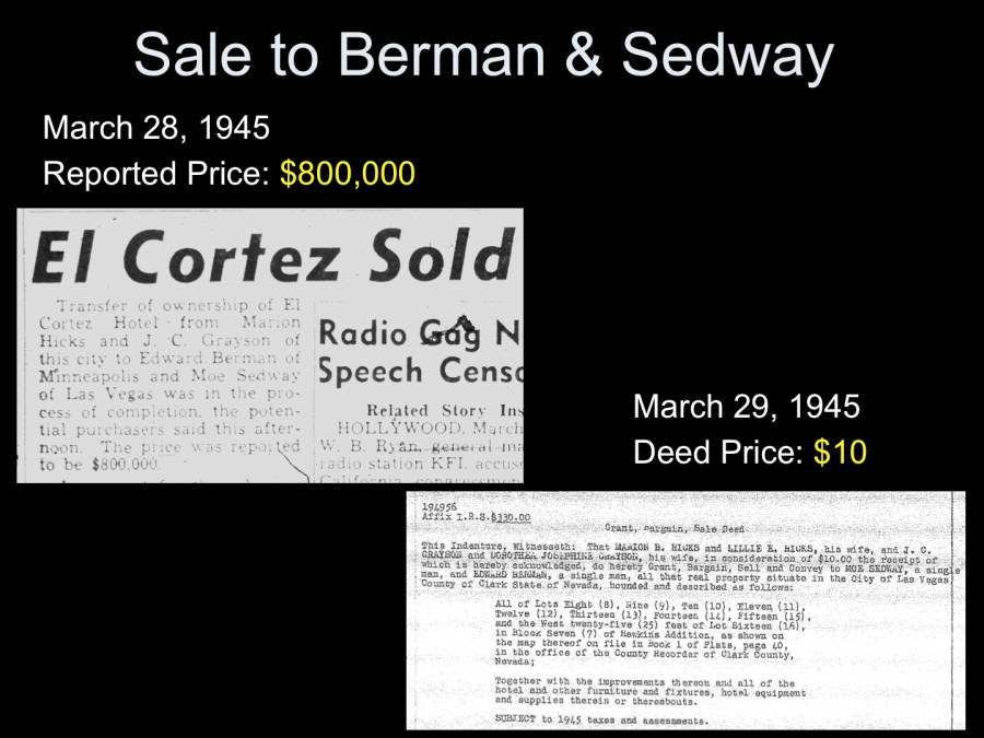 El Cortez sold to Moe Sedway et al