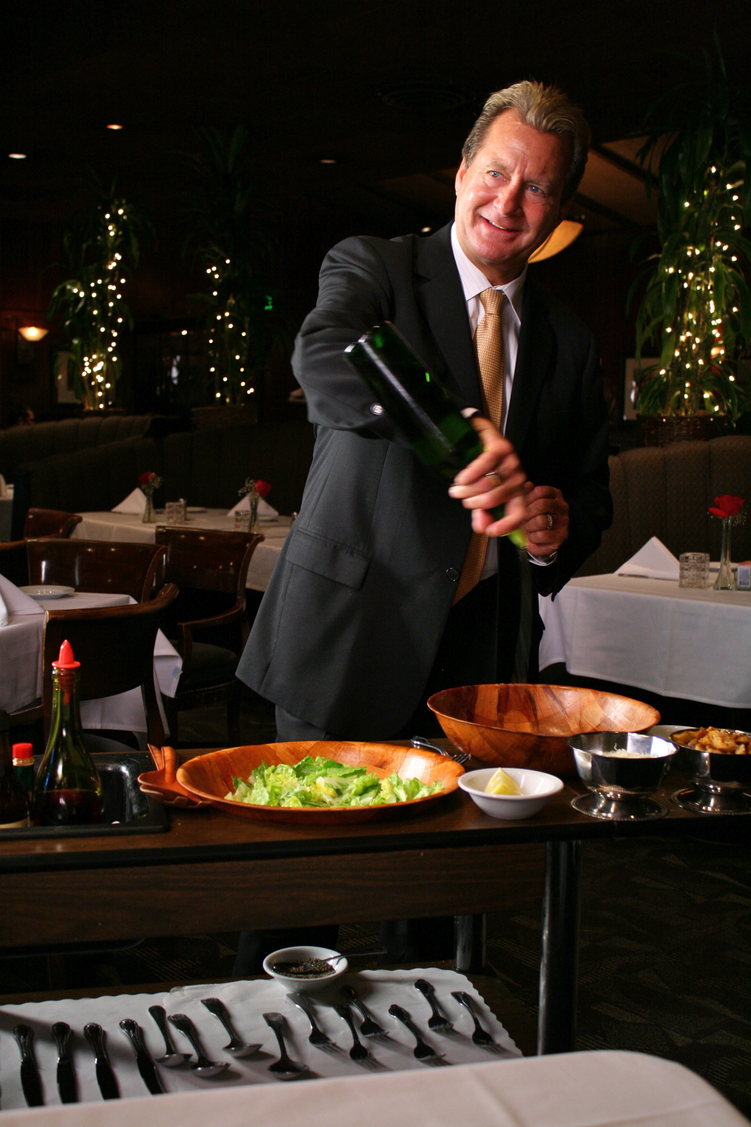 Dal Rae co-owner Lorin Smith prepares their signature Caesar Salad tableside